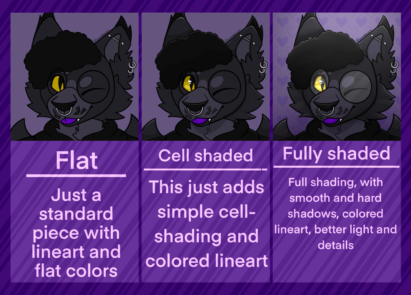 Flat | €20,-Shaded | €22,-Full render | €25,-Fullbody----------